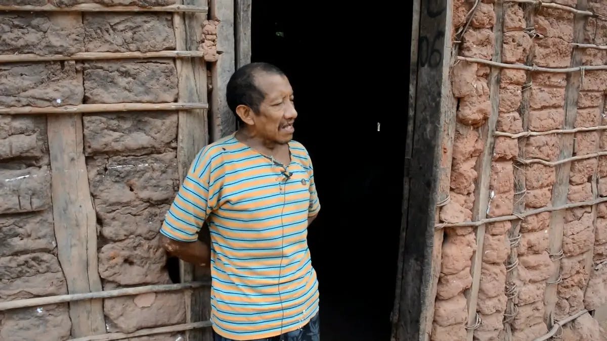 Kamajrua, um dos grandes cantores do povo Awa Guajá, canta em frente à sua casa a música de Panỹxa'a, o karawara matador de porcão. Seu canto lamenta os incêndios que queimaram a floresta do território awa guajá em 2015.